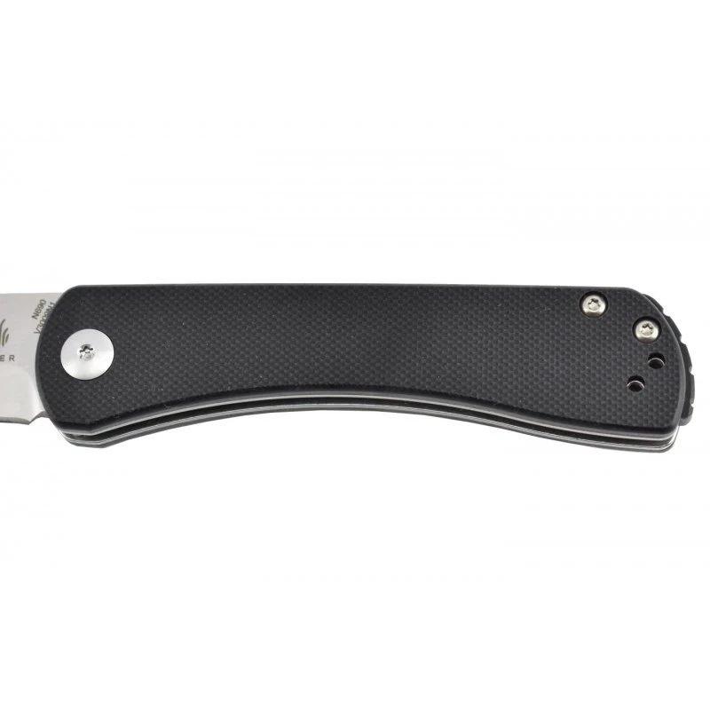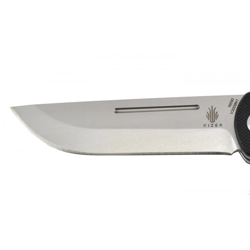 Le couteau Kizer Vanguard Pinch V3009N1 dispose d’une lame de 76mm de long, en acier Bohler N690 (épaisseur 3mm). Tranchante, elle est bien sûr décorée par le logo Kizer (fabricant Chinois) ainsi que personnalisable via gravure (voir bouton ci-dessous). Un couteau pliant, utilisable des deux mains, qui s’avère donc être ergonomique, performant et doté d’un design simple mais efficace. Une valeur sûre !