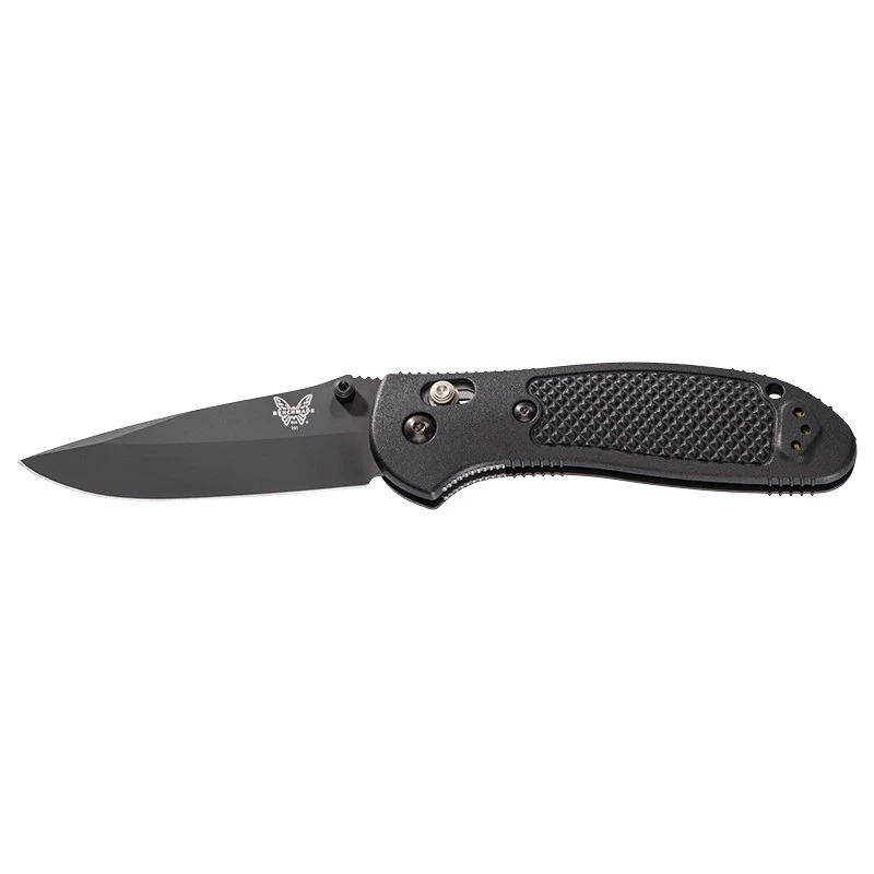 Ce Benchmade BN551BK GRIPTILIAN est un couteau pliant dont le design a Ă©tĂ© conçu par le cĂ©lĂšbre designer Mel Pardue. Ce couteau porte le nom de Griptilian Black en raison de sa conception complĂštement noire : la lame mesure 88mm de longueur et est conçue en acier inoxydable 154CM. Le manche noir lui est fabriquĂ© Ă partir de fibre de verre et de nylon : ce matĂ©riau s’appelle le GFN. En plus d’ĂȘtre Ă©lĂ©gant, le GFN apporte Ă©galement de la rĂ©sistance au manche qui rĂ©siste ainsi aux chocs et chutes. En plus de son excellente robustesse, le manche garantit Ă l’utilisateur une trĂšs bonne maniabilitĂ©. CĂŽtĂ© longueur, le manche mesure 117mm de longueur, lorsqu’il est en position fermĂ©e, le couteau pliant Benchmade BN551BK GRIPTILIAN est donc trĂšs facile Ă emporter. Les aventuriers n’auront qu’Ă le glisser dans leur poche et ils auront un puissant alliĂ© pour les aider dans leurs aventures. Le Benchmade BN551BK GRIPTILIAN Black est facile Ă ouvrir de part son systĂšme de verrouillage Axis Lock. Avec clip ceinture rĂ©versible pour un transport sans encombre.