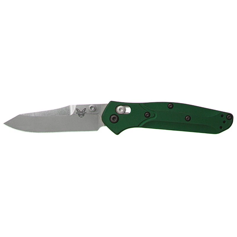 Le Mini Osborne 945 est une version plus petite du célèbre couteau Benchmade 940 Osborne. Il s’adresse donc davantage à celles et ceux en quête d’une meilleure transportabilité. Ce modèle BN945 Benchmade possède un manche vert en aluminium 6061-T6 à l’origine d’une forte robustesse et d’une légèreté à toute épreuve. Confortable à prendre en main, la poignée verte intègre également un clip réversible de couleur noire au dos afin que vous puissiez emporter le couteau n’importe où sans difficulté.