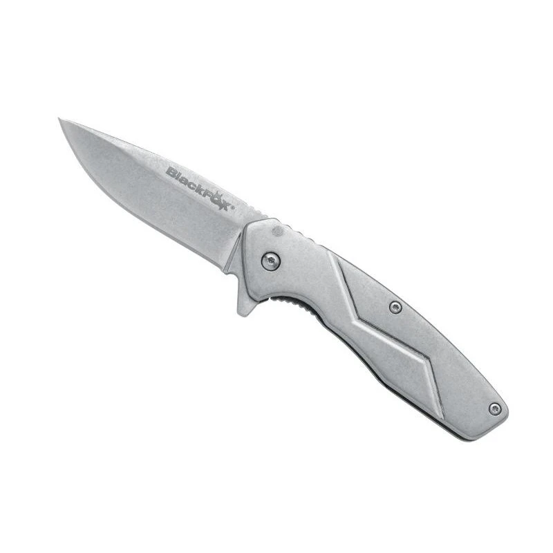 Ce couteau Black Fox Steelix est muni d’une lame avec flipper en acier 440C finition stonewashed. MarquĂ©e du texte « BlackFox » en rĂ©fĂ©rence au fabricant, sachez que vous pouvez Ă©galement personnaliser le verso de la lame du texte de votre choix. Pour cela, il faudra ajouter un supplĂ©ment de 8,90⏠en plus du prix du couteau Black Fox Steelix, soit un total de de 48,80⏠gravure comprise. Toutefois, la gravure est Ă©videmment facultative, vous pouvez tout Ă fait acheter ce couteau de poche comme il est prĂ©sentĂ© sur l’image. Tout acier, le manche de 10cm de long est aussi conçu en acier 440C. Un clip de poche est prĂ©sent pour que le transport se fasse tout le temps sans encombre.