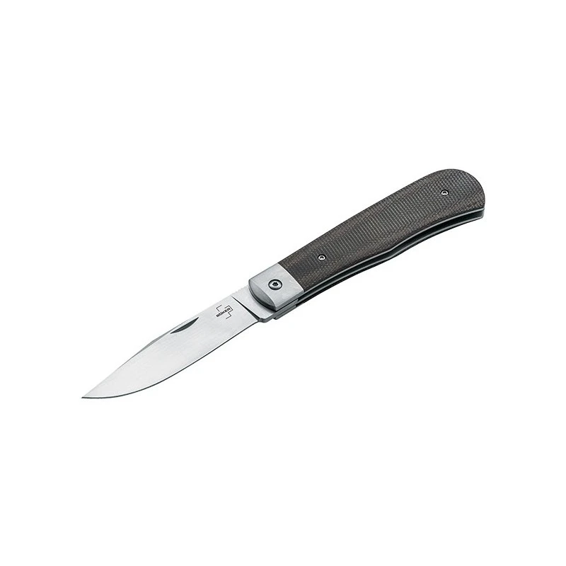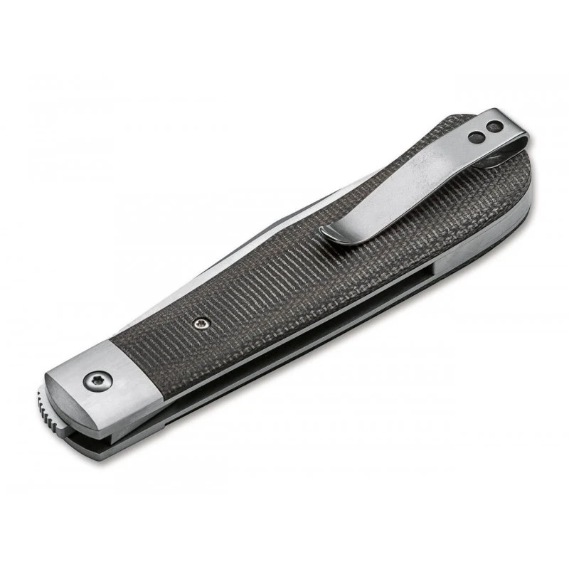 Le Bonfire Micarta est un couteau de poche Böker Plus fabriqué avec des matériaux de qualité, et à la finition parfaite. Son manche est fabriqué en micarta avec note en acier inoxydable, il est attrayant visuellement parlant, mais aussi transportable à souhait grâce au clip au dos. Sa conception est durable et son ergonomie irréprochable, le manche se saisit facilement et procure un grand confort. Le Böker Plus Bonfire Micarta 01BO182 possède également une lame drop point de 87mm en acier D2 très qualitatif. Le couteau s’utilise de façon très sécurisée grâce au système de verrouillage liner lock, la lame se déploie de façon très rapide via le flipper. Elle comprend un onglet acéré et se voit décorée par le logo Böker Plus, possibilité de venir graver la lame par un texte au choix.
