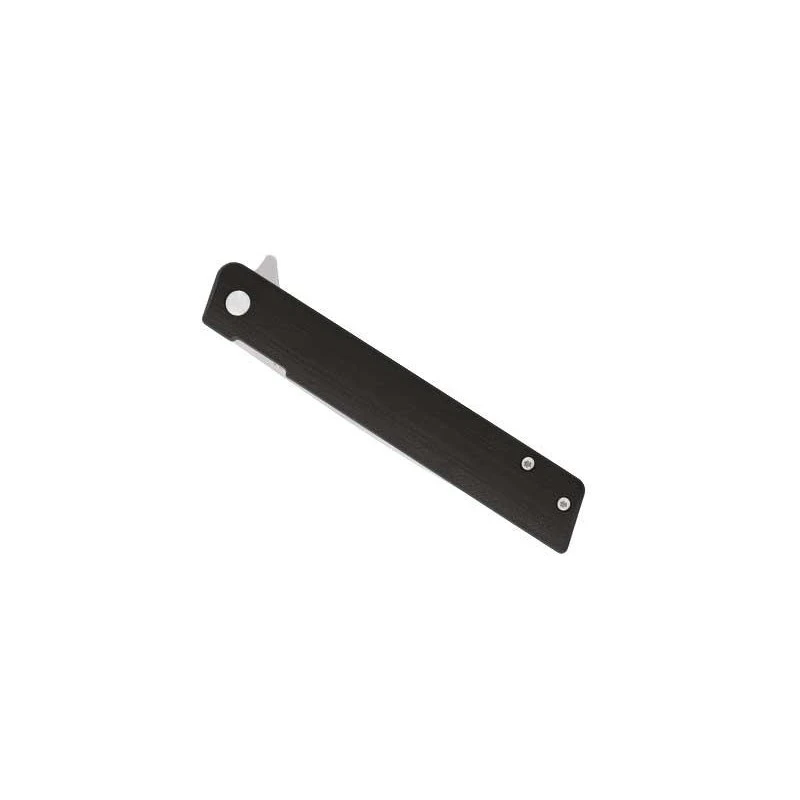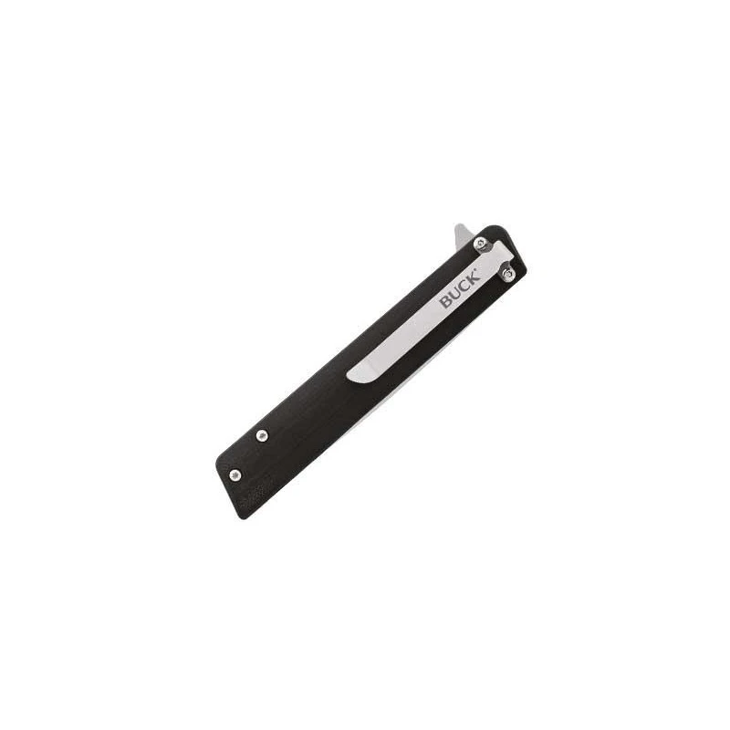 Mince, élégant et performant, voilà une façon simple de décrire le Buck Decatur. Ce couteau de gentleman possède une lame drop point fabriquée en acier inoxydable 7Cr, à la finition satinée. L’ouverture de cette dernière est réalisée sans encombre, d’une seule main, grâce au flipper, et en douceur via le roulement à billes Ball bearing. La lame drop point est solidement maintenue en place grâce au mécanisme de verrouillage liner lock. Le couteau Decatur, signé Buck Knives, est muni d’un manche de couleur noire en G10 afin d’être à la fois ergonomique et robuste (résistance au froid, à la chaleur ainsi qu’aux agents chimiques). Un clip de poche est présent au dos de la poignée en G10, il est marqué par le nom de la marque Buck et permettra de transporter facilement votre couteau gentleman au quotidien. Existe aussi avec manche bois.