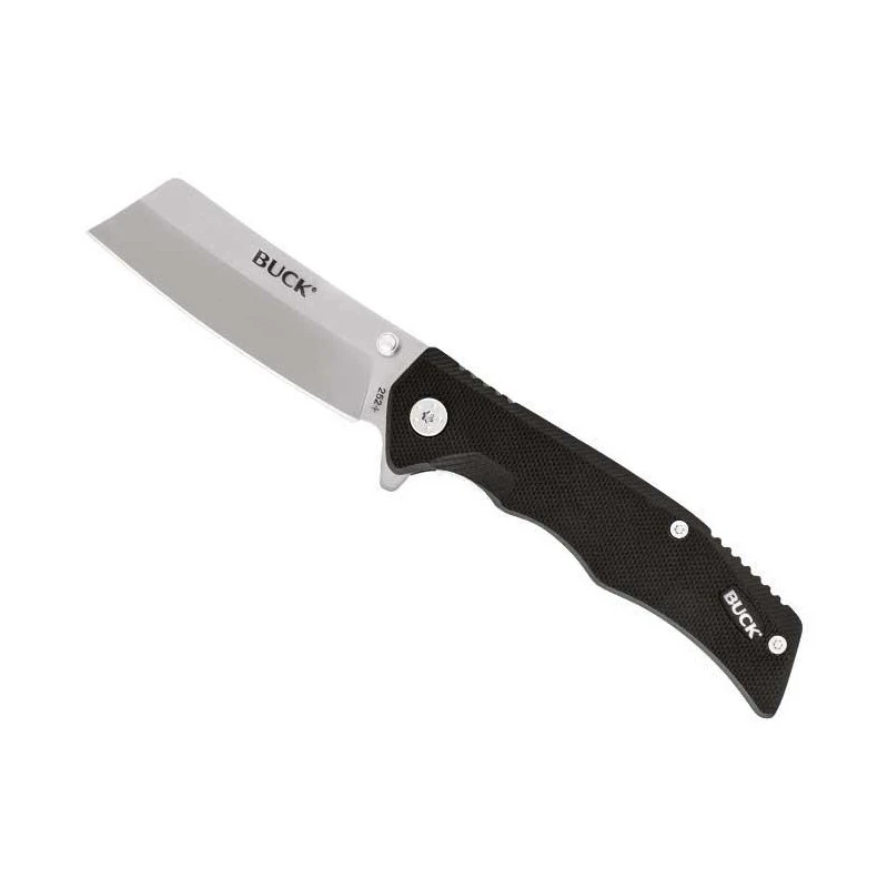 Le Trunk signé Buck Knives est un couteau dimensionné pour les tâches les plus importantes. Ce modèle n° 0252BKS est doté d’une lame Cleaver, façon couperet, fabriquée en acier 7Cr. Décorée par le logo Buck, elle intègre un flipper ainsi qu’un bouton double, tout cela est à l’origine d’une facilité d’ouverture permanente, à chaque instant. Le verrouillage de lame est assuré, une fois n’est pas coutume, par le populaire mécanisme liner lock. Gravure sur lame possible en supplément, l’option est facultative. Le Buck Trunk 0252BKS est un couteau pliant qui intègre un manche de 10cm de longueur en G10 noir. Ce matériau presque indestructible, qui résiste aux chocs, au froid, à la chaleur et même aux agents chimiques ! Qui plus est, il tient bien en main, une ergonomie de haute voltige ! On peut observer le texte Buck en blanc, qui contraste ainsi à merveille par dessus la couleur noire de la poignée en G10. Un clip de poche est présent au dos pour faciliter les déplacements avec le couteau Trunk. Garantie à vie contre les défauts de fabrication.