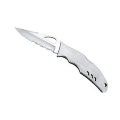 Le couteau Byrd Flight référence BY05PS se dote d’une lame à dents de 87mm conçue en acier 8Cr13MoV, un acier de qualité muni des mêmes performances que l’acier AUS-8. L’acier 8Cr13MoV comprend du molybdène permettant d’améliorer la dureté de la lame ainsi que du vanadium pour la résistance à l’usure. Comme pour les couteaux pliants Spyderco, le Byrd Flight dispose d’un lame à cran avec trou. Le manche lui est fabriqué en acier inox et mesure 12cm de longueur, il est ainsi facile à ranger en toutes circonstances. Couteau de poche fabriqué en Chine et « designé » par Spyderco avec clip pour les transports.