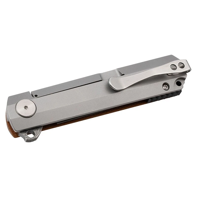 Facilement transportable, le couteau Cataclyst Brown Damascus intègre un passe-lacet (trou de lanière) ainsi qu’un clip de transport profond fraisé, à la finition satinée. La lame damas se déploie aisément via le flipper ainsi que le roulement à billes, elle est maintenue ouverte grâce au mécanisme flipjoint non bloquant. Sécurisée du fait de la présence de jimpings dans la zone du repose-pouce et sur le backspacer, elle est rainurée des deux côtés, autrement dit sur la face recto mais aussi verso !