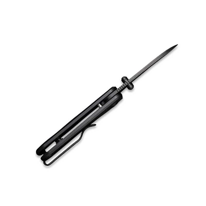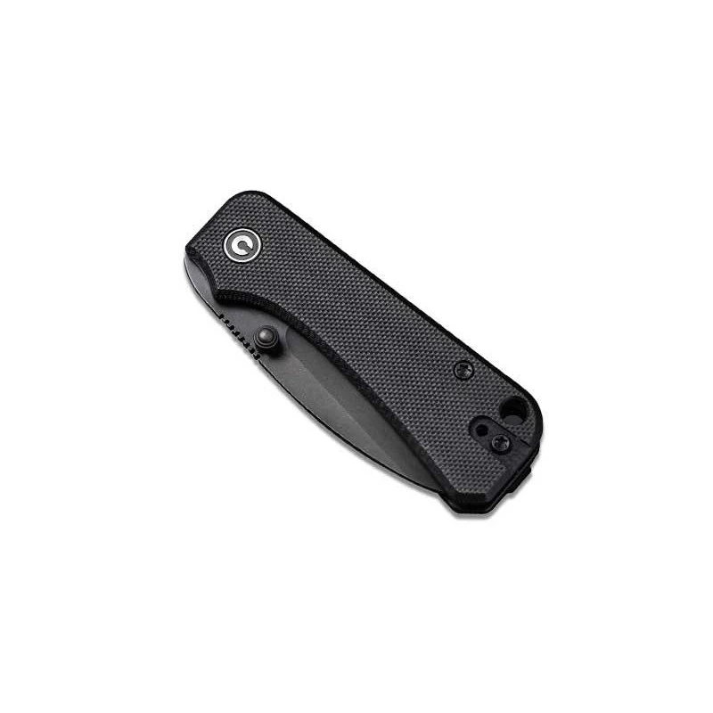 En coutellerie, le noir est une couleur très utilisée car elle allie la sobriété et l’élégance. Pour la conception du Baby Banter Civivi, le designer Ben Petersen a justement eu recours à ce coloris. La lame en acier Nitro-V présente une finition blackwash ou encore noire avec finition stonewashed si vous préférez, cela revient au même. Mesurant à peine 6cm de longueur, elle est agrémentée d’un double bouton de pouce en titanium 6AL4V permettant de la déployer facilement en toutes circonstances. Le liner lock assure un verrouillage sûr et fiable tandis que le ball bearing (roulement à billes) apporte de la fluidité au moment des ouvertures/fermetures.