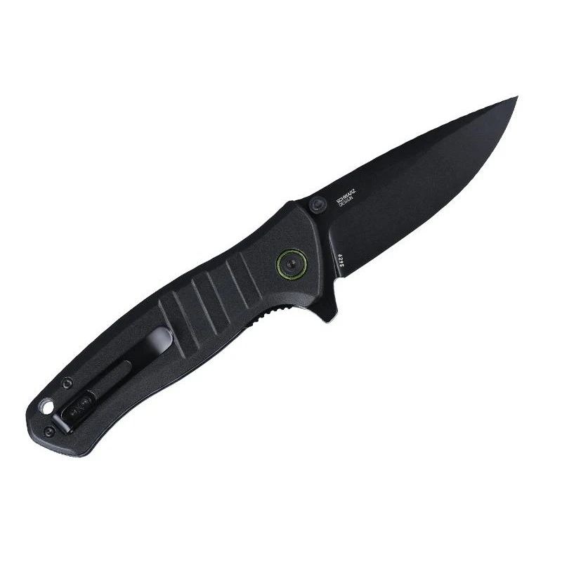 Le DEXTRO CRKT est un couteau pliant conçu par T.J. Schwarz à Boise, Idaho. Il présente une apparence furtive grùce à sa couleur entiÚrement noire, mais un petit accent vert sur le pivot suggÚre une puissance cachée.