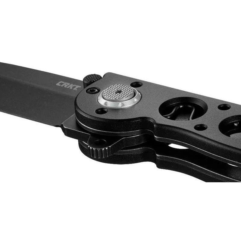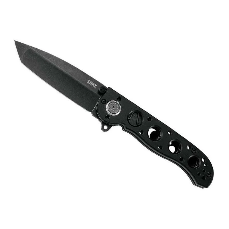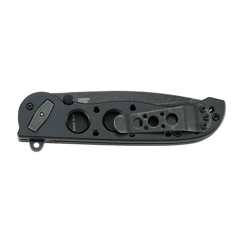Le couteau CRKT M16-02DB intĂšgre une lame relativement compacte (79mm) construite en acier D2. Pourvue d’une finition black stonewashed du plus bel effet, elle est de forme tanto afin de confĂ©rer force et puissance Ă l’usage. Le manche du M16-02DB est fait d’aluminium noir lĂ©ger et robuste, en harmonie avec le style de la lame tanto. Largement ajourĂ© par des formes rondes, il offre une facilitĂ© de transport certaine par sa longueur fermĂ©e de 108mm ainsi que son clip Ă deux positions.