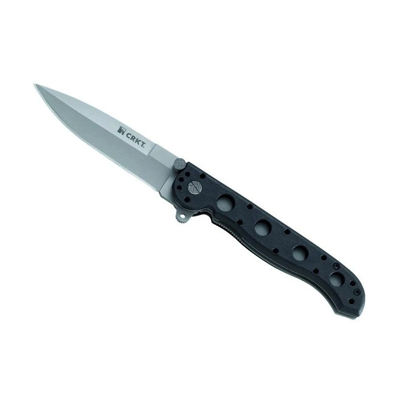 Appartenant à la version Z de la série M16-03, ce couteau CRKT est le plus grand de tous, il est doté d’une conception mince. Une fois n’est pas coutume, c’est une réalisation de Kit Carson provenant du Kentucky. Ce modèle 1603Z.CR est doté d’une lame en acier AUS-8 à haute teneur en carbone pour le tranchant rasoir, elle mesure presque 9cm de longueur. Elle est dotée d’un double bouton de pouce, du Carson Flipper qui agit aussi comme protège-lame, mais surtout de la sécurité supplémentaire grâce au système Automated Liner Safety (verrouillage type liner lock). Possibilité de venir personnaliser la lame par la gravure du texte de votre choix (option facultative en supplément). Le manche du couteau CRKT M16-03Z est fabriqué en nylon et fibre de verre, coloris noir, avec multiples ajours. Un clip noir avec logo CRKT blanc est de la partie au dos, afin que le couteau puisse vous accompagner partout. La série M16 se décline de différentes façons, que ce soit au niveau des manches ou des lames.