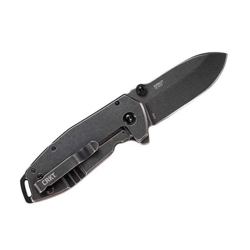 La rĂ©fĂ©rence 2493 de la marque AmĂ©ricaine Columbia River Knife & Tool correspond Ă la version blackwash du couteau Squid Assisted. Rappelez-vous, il s’agit d’une rĂ©alisation du cĂ©lĂšbre designer Lucas Burnley localisĂ© en Oregon. FabriquĂ© intĂ©gralement en acier inoxydable (8Cr14MoV pour la lame, 2Cr13 pour le manche), cet EDC a une finition noire blackwash sur l’ensemble ce qui lui vaut une bonne rĂ©sistance Ă la corrosion et un parfait masquage des rayures. Le Squid Assisted Blackwash intĂšgre un systĂšme d’ouverture assistĂ© avec flipper et double thumb stud, le dĂ©ploiement est associĂ© Ă un roulement Ă billes pour une ouverture fluide et douce. Le verrouillage est assurĂ© par un mĂ©canisme frame lock. MarquĂ©e par l’inscription CRKT de couleur contrastĂ©e, la lame est facilement rĂ©affĂ»table pour un tranchant performant oĂč vous voulez, quand vous voulez.