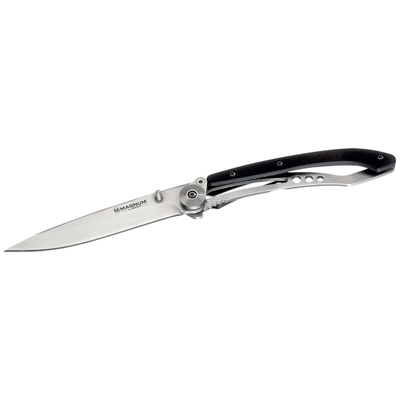 Voici le couteau Böker Magnum Dejavu, modèle 01RY270, dans sa version manche en G10 noir et acier gris, ajouré pour une forte dose de style, ainsi qu’une légèreté en toutes circonstances (poids de 45g). Esthétique, la poignée est aussi à l’origine d’une facilité de port quotidienne, sa longueur de 10cm permet de l’introduire facilement n’importe où, comme dans une poche ou un sac à dos. Au dos du manche en G10 noir, se trouve un clip de poche ajouré, qui permet de transporter le couteau avec toujours plus de facilité, d’aisance.