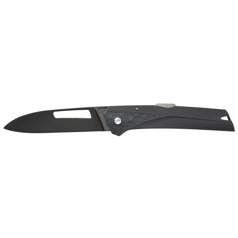 De fabrication 100% Française par la coutellerie Florinox, ce couteau Kiana Origine est pourvu d’un manche coloris gris foncĂ©, toujours conçu en polyamide chargĂ© en fibre de verre. RĂ©sistant, il est aussi trĂšs Ă©lĂ©gant du fait qu’une partie est dĂ©corĂ©e par un beau motif nid d’abeille. La longueur de la poignĂ©e est de 113mm ce qui permet de transporter le couteau trĂšs facilement. Le verrouillage Ă pompe permet de verrouiller/dĂ©verrouiller la lame par un simple appui. Ă propos de la lame, sachez qu’elle est de couleur noire, ajourĂ©e, et fabriquĂ©e en acier inoxydable X35Cr16N. Cela lui confĂšre de l’allure, du charme, n’oubliez pas qu’elle est personnalisable par gravure. Longueur de la lame : 87mm. Pour plus de fantaisie, ce mĂȘme modĂšle existe aussi en version manche orangĂ©e.