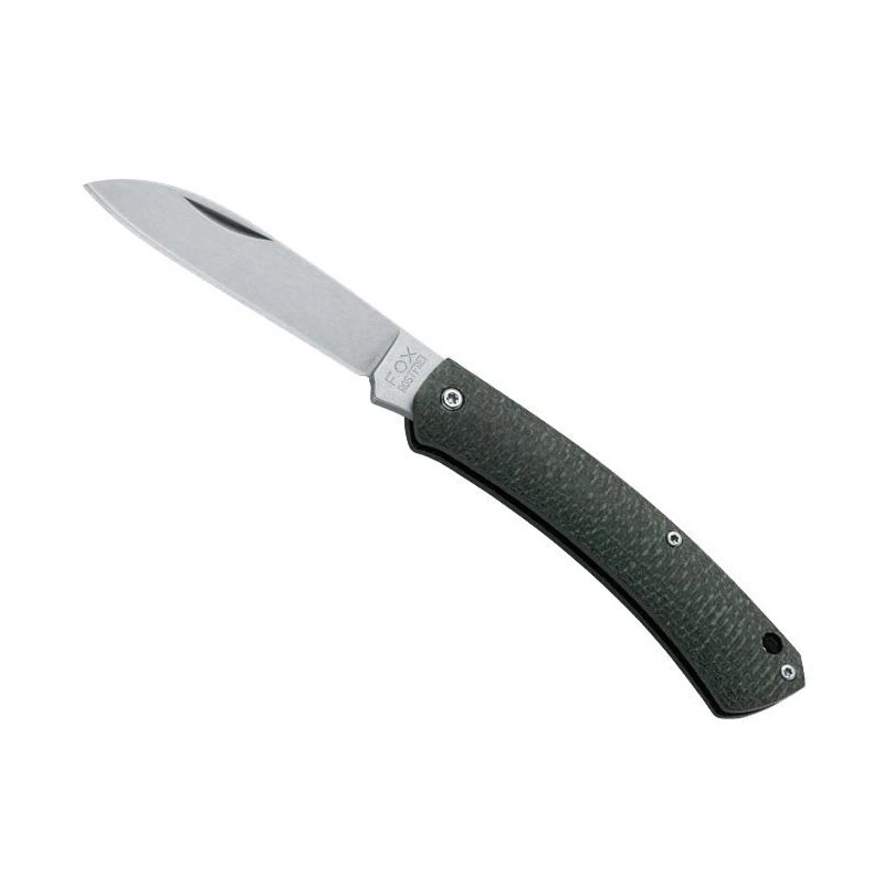 Le Fox Nauta est un petit couteau pliant EDC, type gentleman, au design trĂšs Ă©quilibrĂ©. Il possĂšde une lame de 85mm de longueur, avec onglet acĂ©rĂ©, fabriquĂ©e en acier inoxydable 420 (duretĂ© HRC 54-56). La lame est de type stonewashed ce qui permet de masquer les rayures d’utilisations, avec systĂšme slip joint, possibilitĂ© de gravure.