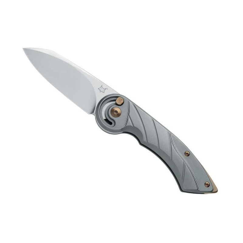 Le Fox Radius est un couteau pliant d’exception signé Denis Simonutti. Il s’agit ici du modèle FX.550TI, doté d’un manche en titanium anodisé gris, avec clip, pivot et vis en titanium anodisé bronze pour l’effet design, élégant. Le clip garantit une facilité de port en toutes circonstances, de toute manière la poignée ne mesure que 115mm de longueur.