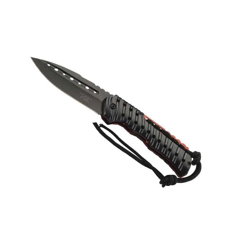 Ce couteau Herbertz 208312 possĂšde un manche fabriquĂ© en acier rouge et plaquettes en ABS noir, un manche mesurant exactement 12cm de longueur. Ergonomique, le manche intĂšgre Ă©galement un cordon noir ainsi qu’un clip permettant d’attacher le couteau oĂč vous voulez durant les aventures, dĂ©placements ou mouvements. Ce modĂšle dispose aussi d’une lame noire Ă trous en acier inoxydable 420 Ă cran intĂ©rieur, elle mesure 9,5cm de longueur. FabriquĂ© en Allemagne, ce couteau pliant Herbertz 208312 vous sĂ©duira pour sa facilitĂ© de transport, son design, son ergonomie et aussi son petit prix : 9,90⏠seulement !
