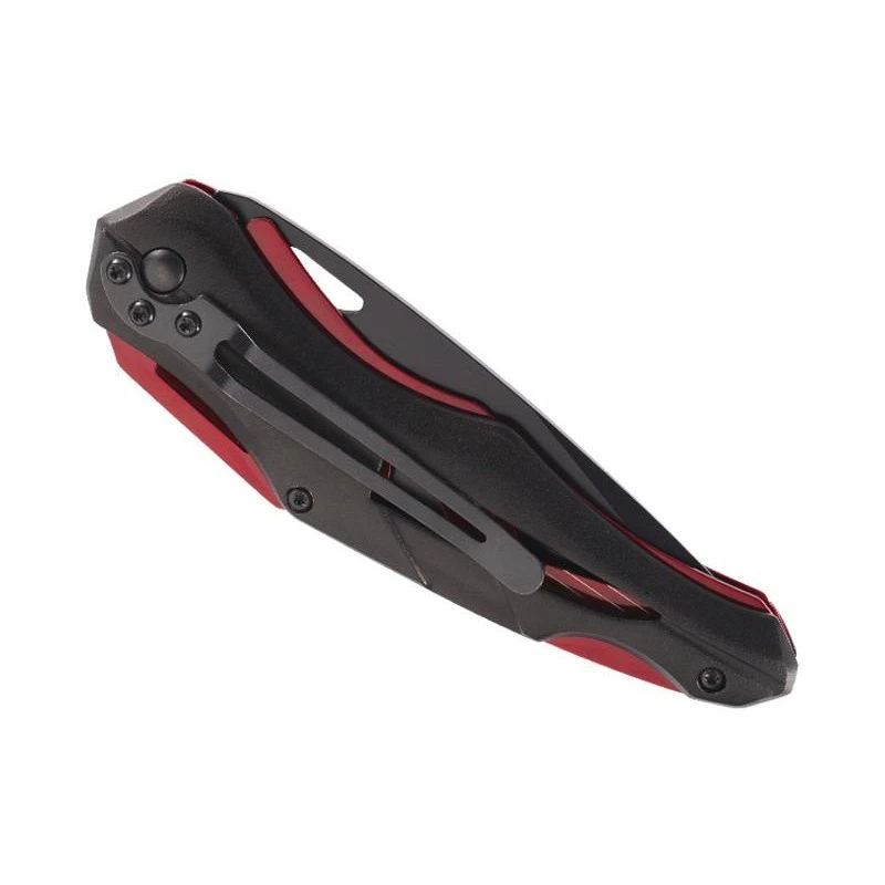 Le rouge et le noir sont deux couleurs qui sont très complémentaires. C’est pourquoi la coutellerie Allemande Herbertz a conçu ce couteau pliant dont le manche est fabriqué en acier inox rouge avec plaquettes en aluminium noires. Il est vraiment très moderne, de plus, la lame est aussi conçue en acier inoxydable 420 noire à cran intérieur afin de s’harmoniser avec le manche. À noter que la lame est également décorée par un trou.