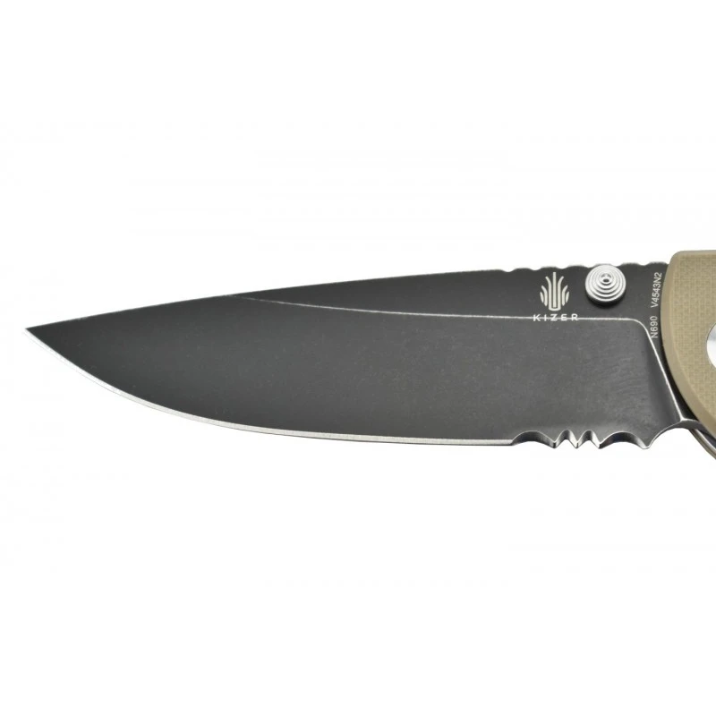 Le Kizer Justice est conçu par les designers Nhut Huynh et Azo. Un couteau pliant qui possĂšde une lame drop point, Ă la finition satinĂ©e, fabriquĂ©e en acier N690, avec tranchant mixte (partie lisse et dentĂ©e si vous prĂ©fĂ©rez). La lame est dĂ©corĂ©e par le logo Kizer au niveau de la partie supĂ©rieure, elle comprend aussi un ergot de pouce thumb stud afin de l’ouvrir avec toujours plus de facilitĂ©. Le verrouillage est ici de type liner-lock. Longueur de la lame : 97mm.