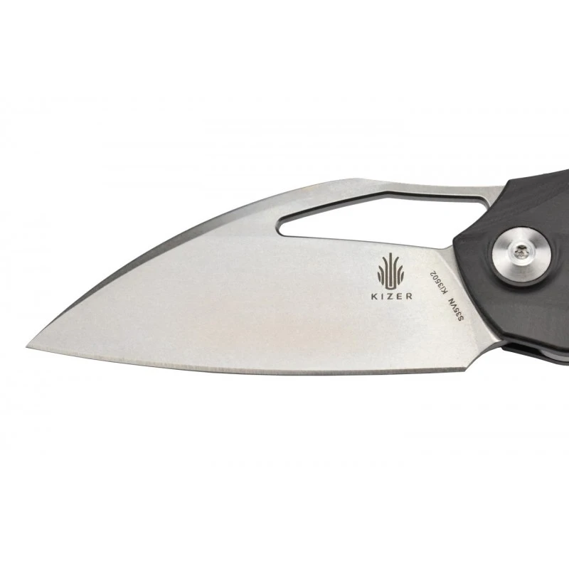 Le Kizer Minitherium est un couteau pliant Chinois au design raffiné, ou encore à l’allure sophistiquée si vous préférez. À noter que c’est une création du très célèbre designer Elijah Isham. Un couteau qui possède une lame de 75mm en acier inoxydable CPM-S35VN, s’ouvrant facilement et rapidement grâce au flipper. On soulignera bien sûr la présence d’un très large trou ou ajour, avec juste en-dessous le logo Kizer, ce qui fera plaisir aux nombreux fans du fabricant Chinois. Il est possible de graver la lame de votre couteau Kizer Minitherium, pensez-y !
