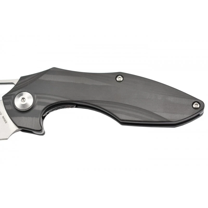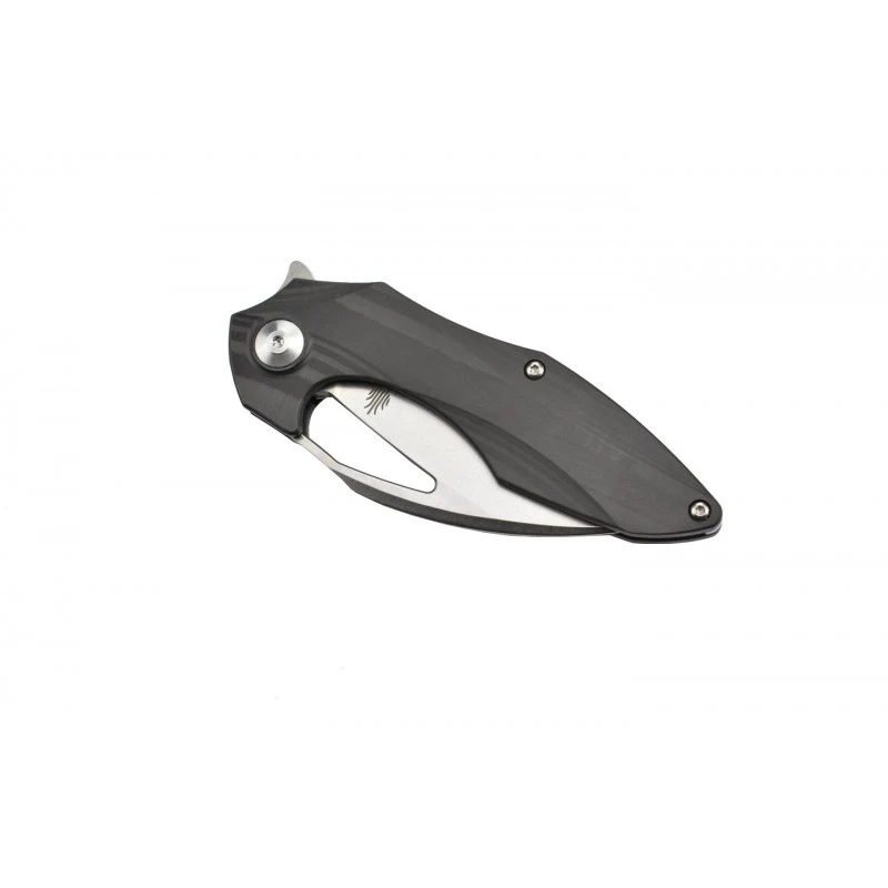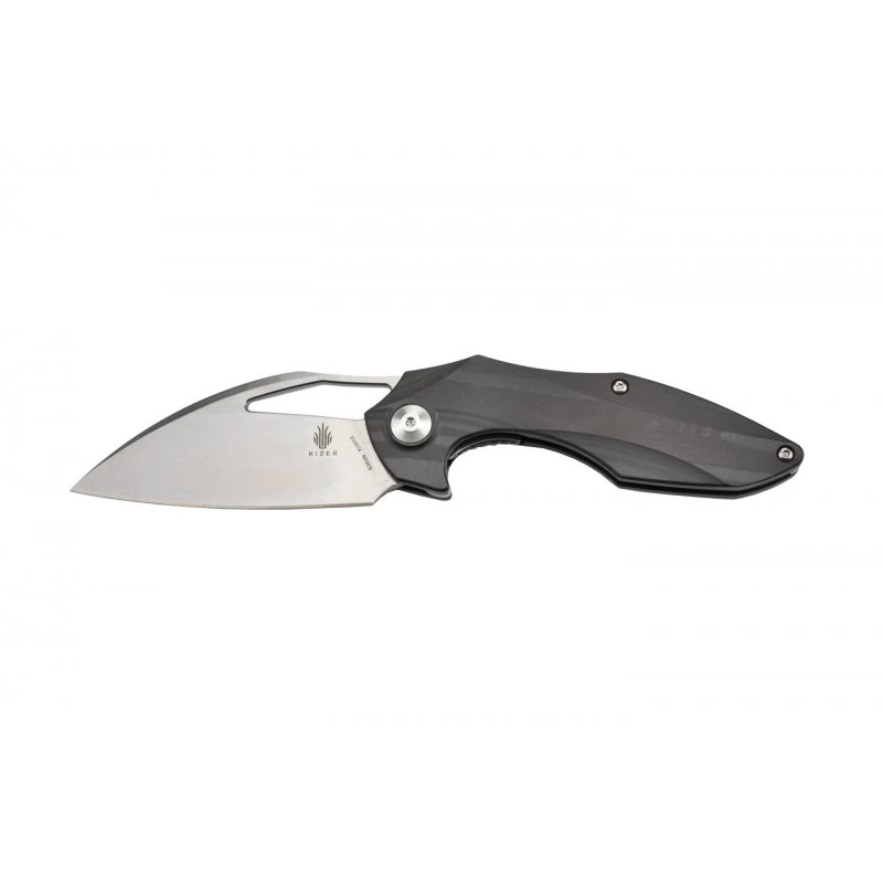 Le manche du Minitherium Kizer Ki3502 est fabriqué en fibre de carbone, avec clip de poche bleuté de forme originale, permettant de garantir un transport aisé et sans encombre en toutes circonstances. La poignée est profilée, ce qui assure une ergonomie exceptionnelle à chaque instant : tenir le couteau est agréable, confortable, et ce, même en cas d’utilisation prolongée. Un couteau de poche de grande qualité, livré dans un magnifique coffret Kizer, avec housse. L’épaisseur de la lame est de 3mm.