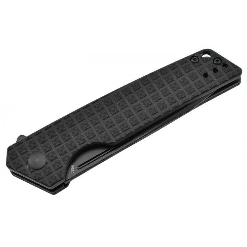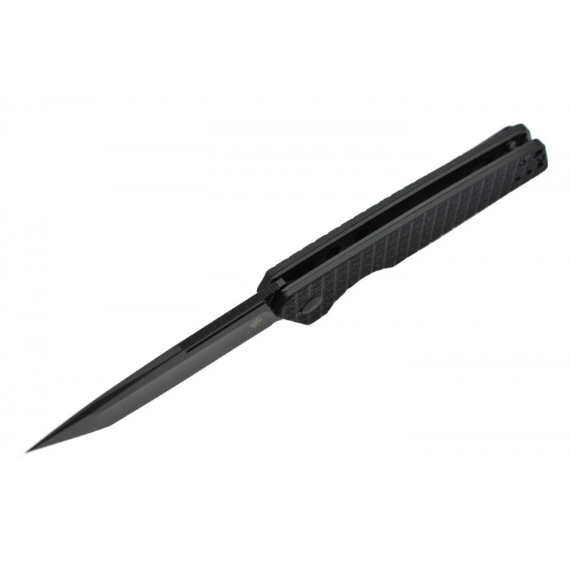 L’acier N690 est de l’acier autrichien, connu pour sa rĂ©tention de tranchant et sa rĂ©sistance Ă la corrosion, ce qui en fait un excellent acier pour un couteau pliant. D’une longueur de 85mm, la lame tanto comporte ici une finition black et a une ouverture par flipper.