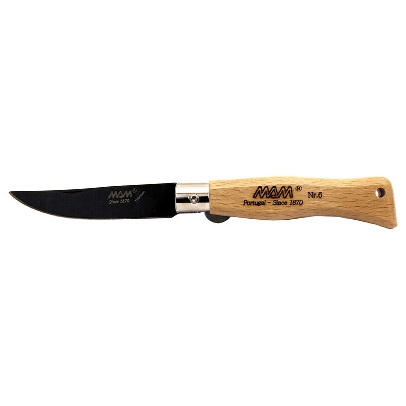 Ce couteau MAM Douro titane noir est simple à emporter, à transporter, du fait qu’il ne mesure qu’environ 9cm de long en position fermée. Son manche en bois de hêtre clair, enrichi du logo « MAM Portugal – Since 1870 », comprend un petit trou permettant d’y passer un cordon ou un lacet.