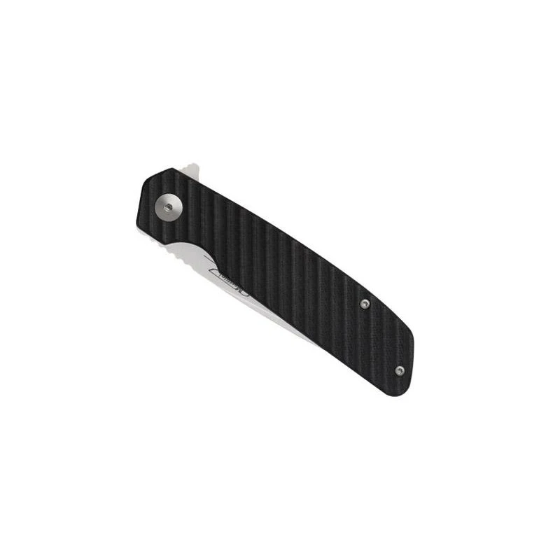 Le MEF 7 est la version compacte du couteau Marttiini MEF 8. Ils sont tous les deux fabriquĂ©s Ă partir des mĂȘmes matĂ©riaux, soit l’acier inoxydable 8Cr14MoV satinĂ© au niveau de la lame et le G10 noir au niveau du manche. Toutefois, le manche est plus petit en ne mesurant que 10cm de longueur, le couteau pliant Marttiini MEF 7 est donc encore plus facile Ă transporter que son grand frĂšre. Ă noter qu’un clip est Ă©galement toujours prĂ©sent au dos. La lame Ă cran intĂ©rieur peut ĂȘtre ouverte rapidement et facilement Ă l’aide du flipper, de quoi faire face Ă tous les dangers.