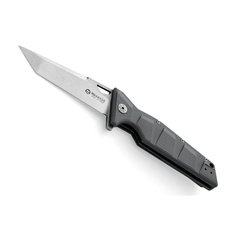 Le couteau de poche Maserin Artiglio 420.G10S, c’est aussi une lame en acier D2 finition stonewashed de forme tanto avec ajour et logo Maserin juste en-dessous. Une lame de 10cm de long qui se verrouille par cran intérieur (Liner Lock) et s’ouvre très rapidement grâce au flipper. Avec le modèle Artiglio 420.G10S, la coutellerie Italienne Maserin signe ici un couteau performant et élégant à l’apparence militaire. N’oubliez pas que la lame finition délavée est personnalisable par gravure (texte au choix).