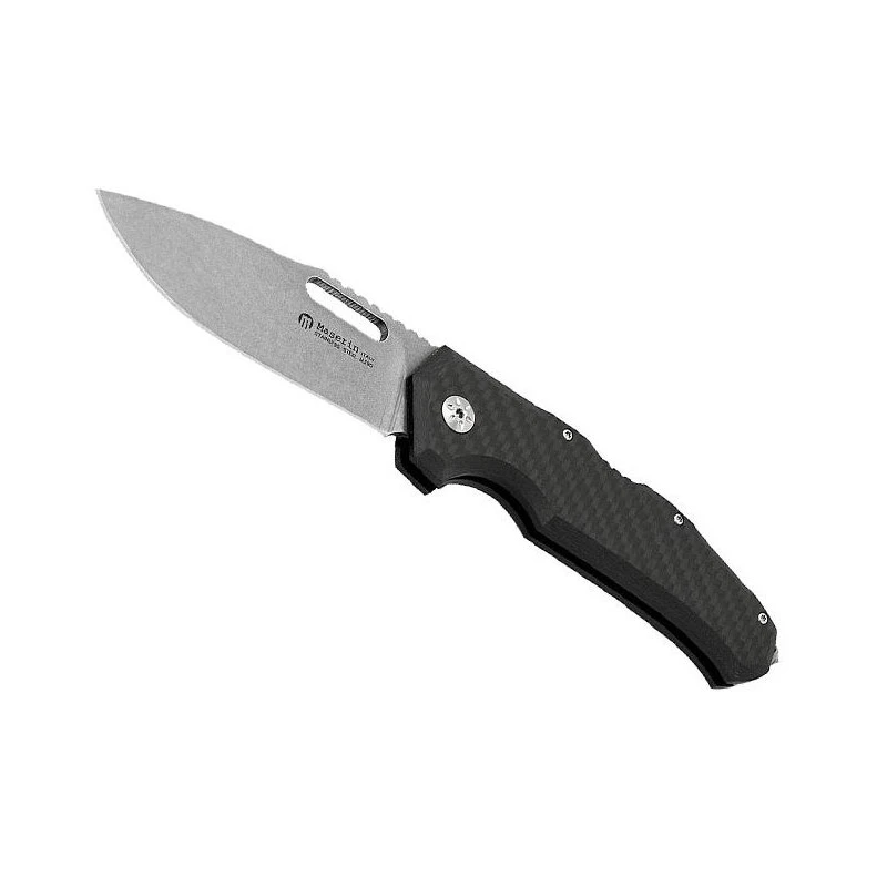 Le couteau Maserin NIMROD 480.CN se destine principalement à l’usage militaire. Il dispose d’un manche noir de longueur 130mm conçu en fibre de carbone, il est à la fois design et agréable à prendre en main. Le manche tient facilement dans une petite poche et convient pour intervenir en cas d’urgence grâce au pic brise-vitre, il y a aussi le clip de poche pour faciliter encore davantage le transport. Le couteau pliant Maserin NIMROD fibre de carbone possède également une lame à trou en acier M390 Bohler finition stonewashed à cran, elle est marquée par le logo Maserin juste en-dessous du trou. Couteau conçu en Italie, système de verrouillage type Back Lock.