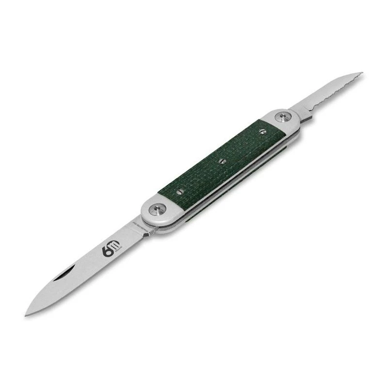 Il y a 60 ans, naissait la coutellerie Italienne Maserin. En 2020, pour marquer le coup et célébrer cet événement anniversaire important, la marque a eu l’idée de lancer un modèle commémoratif. Il s’agit de ce couteau Sessantesimo, ici en version manche en aluminium anodisé gris et plaquettes en micarta vert, il porte la référence 195.MCV. Très élégant, le manche mesure 9cm de long pour la facilité de port, il se range aisément n’importe où. Prendre soin du couteau Maserin Sessantesimo lors des déplacements est très facile du fait qu’il est vendu avec sa pochette en cuir.