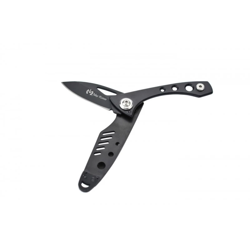 Ce modĂšle Big Flip rotatif, de chez Max Knives (14688N), est un couteau pliant dotĂ© d’une finition black intĂ©grale, ou entiĂšrement noir si vous prĂ©fĂ©rez. Sa lame de 57mm de longueur, est fabriquĂ©e en acier inoxydable 440C, elle est dĂ©corĂ©e par le logo Max Knives sur la partie basse et intĂšgre un gros ajour sur la partie supĂ©rieure. Un modĂšle dĂ©posĂ© Max Knives 14688N dont le manche est ajourĂ© Ă multiples reprises, et qui intĂšgre un clip de ceinture afin que la transportabilitĂ© ne soit jamais un problĂšme. Longueur du couteau en position fermĂ©e : 9cm, existe aussi en version silver ou argentĂ©e.