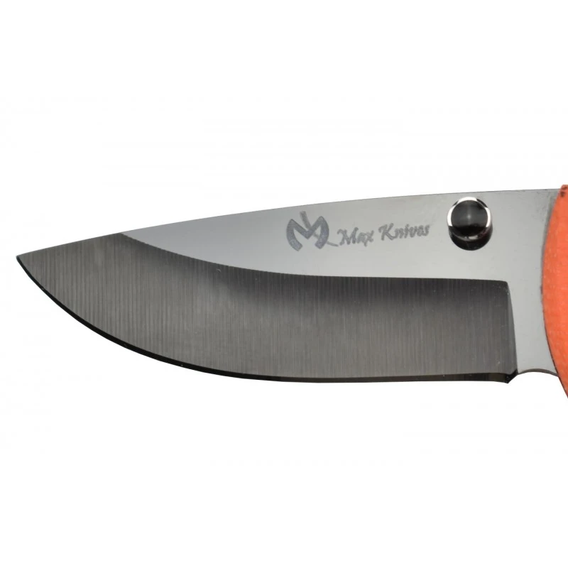 En raison de son manche coloris orange, conçu en G10, impossible de passer à cÎté du couteau Max Knives MKBAM OR sans le remarquer. Un manche orangé qui comprend de fins traits verticaux, procurant un effet bambou trÚs stylé et apprécié de tous et toutes. Facile à repérer, le manche orange est agréable à prendre en main, il intÚgre aussi une paracorde, lanyard, sa longueur de 77mm assure une aisance de port quotidienne.