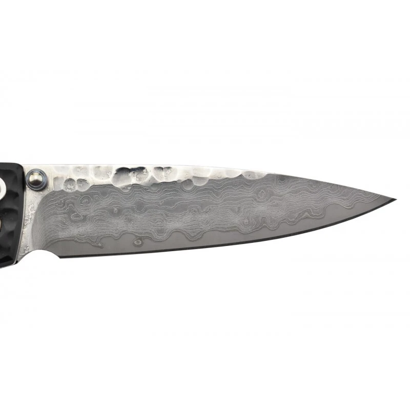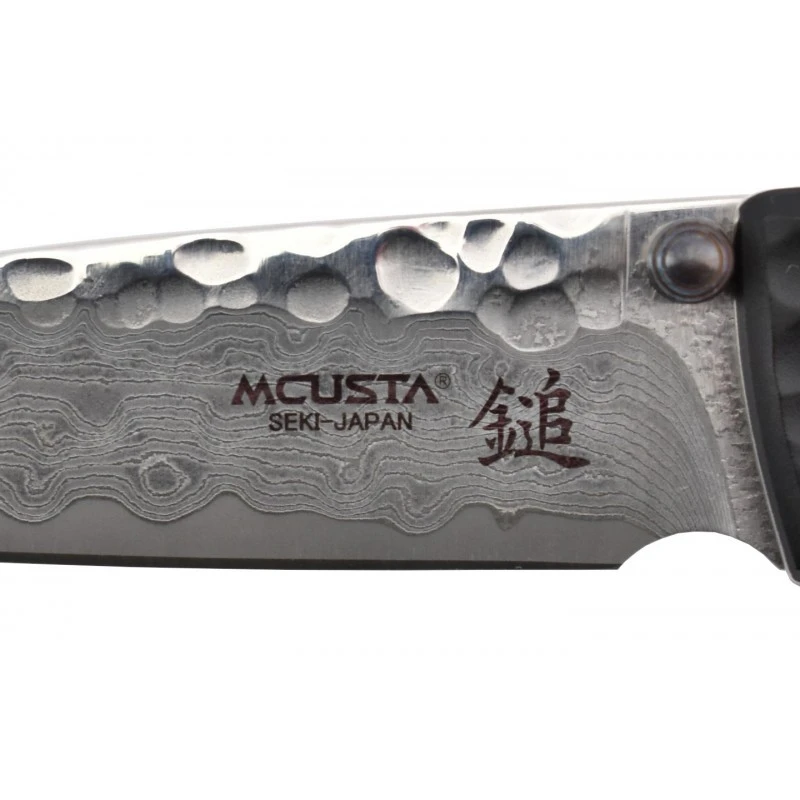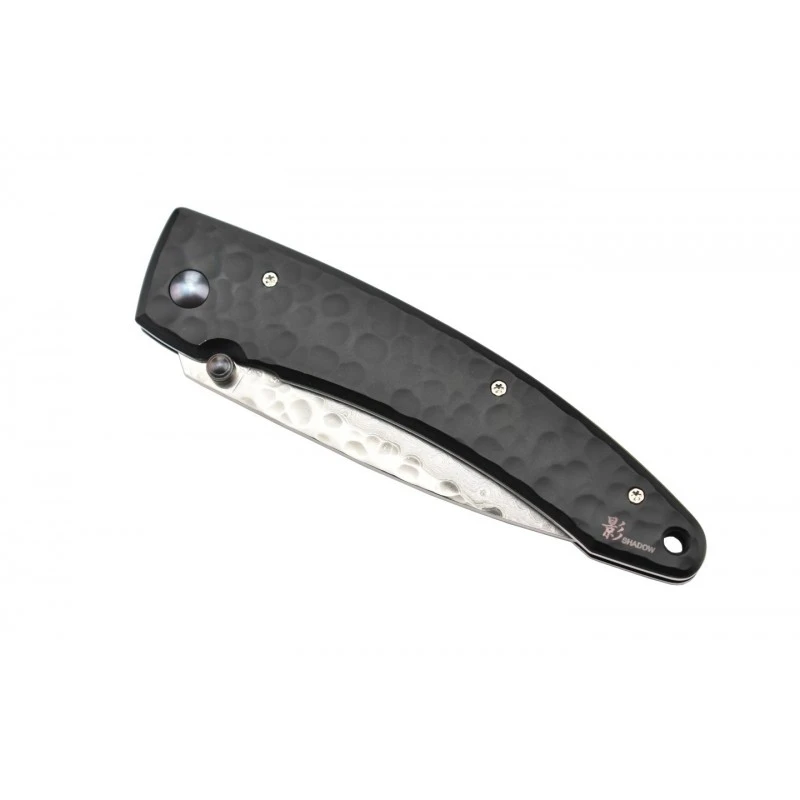 Conçu et fabriqué à Seki au Japon, ce couteau pliant Mcusta MC-114BD Shadow se dote également d’une lame damas, martelée sur la partie supérieure, où l’on peut lire l’inscription « Mcusta Seki Japan« . Une lame très élégante et tranchante, qui comporte un bouton thumb stud, pour un style plus prononcé mais surtout une facilité de déploiement en toutes circonstances. Un couteau Mcusta que vous aimerez sans aucun doute pour son ergonomie et son design atypique !