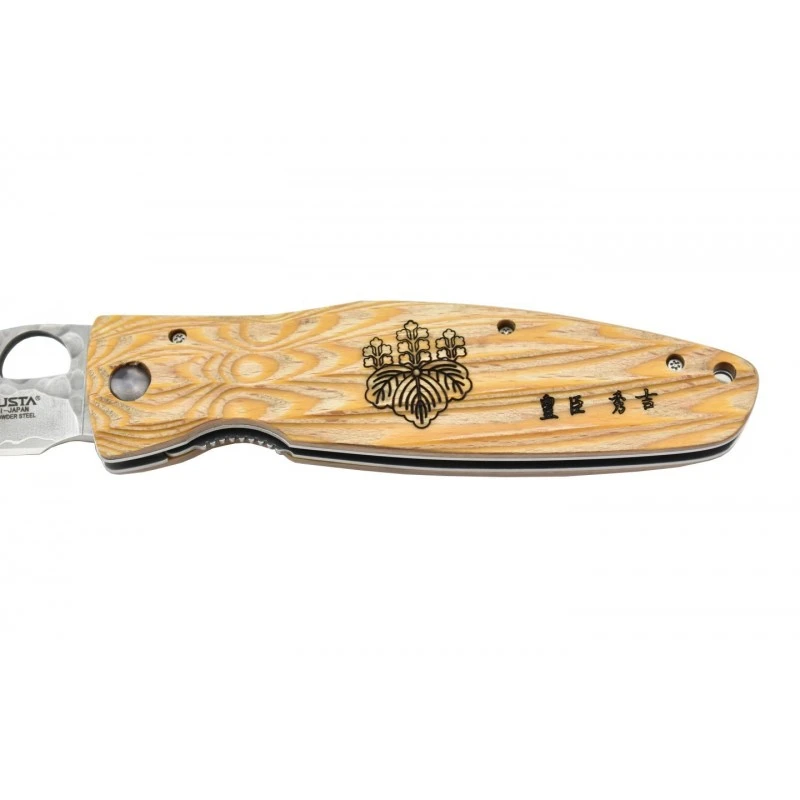 Ce couteau de collection va énormément plaire aux fans de la coutellerie Japonaise Mcusta. Il est muni d’un manche en bois de pakka (pakka wood) de couleur jaune, avec inscription « Taiko » ainsi qu’un motif original traditionnel Japonais. Esthétique, le manche est aussi très transportable avec une longueur de 118mm, un gabarit compact qui permet de l’emporter facilement n’importe où. Le couteau Mcusta MC-182G Taiko, c’est aussi une lame fabriquée à partir de l’acier novateur SPG2, martelée sur la partie supérieure pour la touche design. La lame mesure 93mm de long, elle intègre un trou permettant une ouverture plus facile. Le mécanisme de verrouillage est de type liner lock, la lame est décorée par le logo Mcusta situé juste en-dessous du trou. Fabriqué au Japon, le Mcusta MC-182G Taiko est un couteau pliant pour collectionneurs, amateurs de beaux couteaux Japonais !