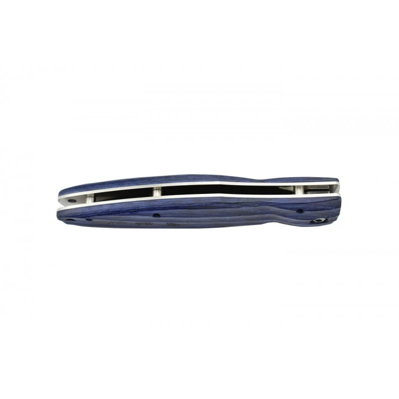 Ce couteau Japonais Mcusta MC-186G est dotĂ© d’un manche en pakka wood coloris bleu foncĂ©, avec un motif original traditionnel en guise de dĂ©cor. Cela apporte une touche d’authenticitĂ© qui fait la diffĂ©rence en terme de design ou d’esthĂ©tisme. Le manche bleu mesure prĂ©cisĂ©ment 118mm de longueur, cela permet de pouvoir facilement transporter le couteau au quotidien. Ă noter que ce modĂšle est Ă©quipĂ© du systĂšme de verrouillage Liner Lock, le plus utilisĂ© dans le milieu de la coutellerie. Le couteau pliant Mcusta MC-186G dispose d’une lame de 93mm en acier SPG2 martelĂ©e sur la partie supĂ©rieure. Il s’agit d’un acier inoxydable et donc de ce fait trĂšs rĂ©sistant face Ă la rouille ou corrosion. DĂ©corĂ©e par le logo Mcusta, la lame en acier SPG2 est ajourĂ©e d’un trou situĂ© juste au-dessus du logo de la coutellerie Japonaise : cela facilite l’ouverture. Le couteau de poche Mcusta MC-186G va Ă©normĂ©ment plaire aux collectionneurs fans de la marque Japonaise : pensez-y !