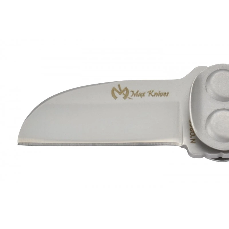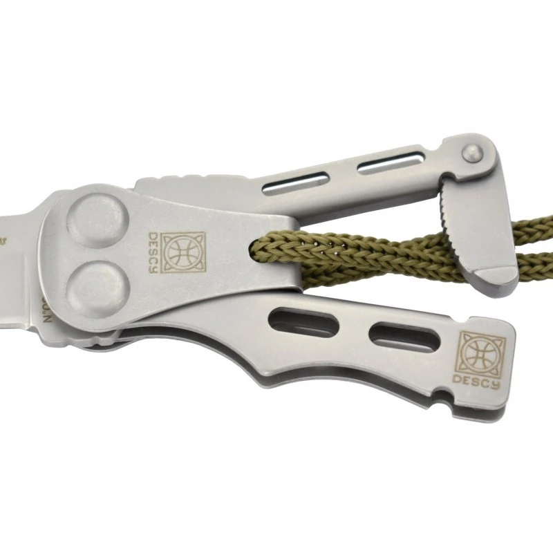 Couteau mini papillon Max Knives DS1 gamme Alain Descy numĂ©rotĂ©, il possĂšde une lame en acier inox 440C de longueur 49mm dĂ©corĂ©e par le logo de la marque Max Knives. RĂ©sistante Ă la corrosion, la lame bĂ©nĂ©ficie d’un trĂšs bon tranchant : elle peut aussi ĂȘtre personnalisĂ©e par un texte au moyen d’une gravure. Compact, ce mini couteau papillon Max Knives DS1 mesure 77mm en position fermĂ©e et 120mm en position ouverte, cela assure une facilitĂ© de transport au quotidien. De plus, comme tous les modĂšles Max Knives Alain DESCY, ce modĂšle DS1 est livrĂ© avec clip et paracorde, de quoi permettre aux aventuriers de toujours l’avoir sous la main lors des aventures et excursions. Assurant une prise en main trĂšs confortable, le manche en acier inox est ajourĂ©.
