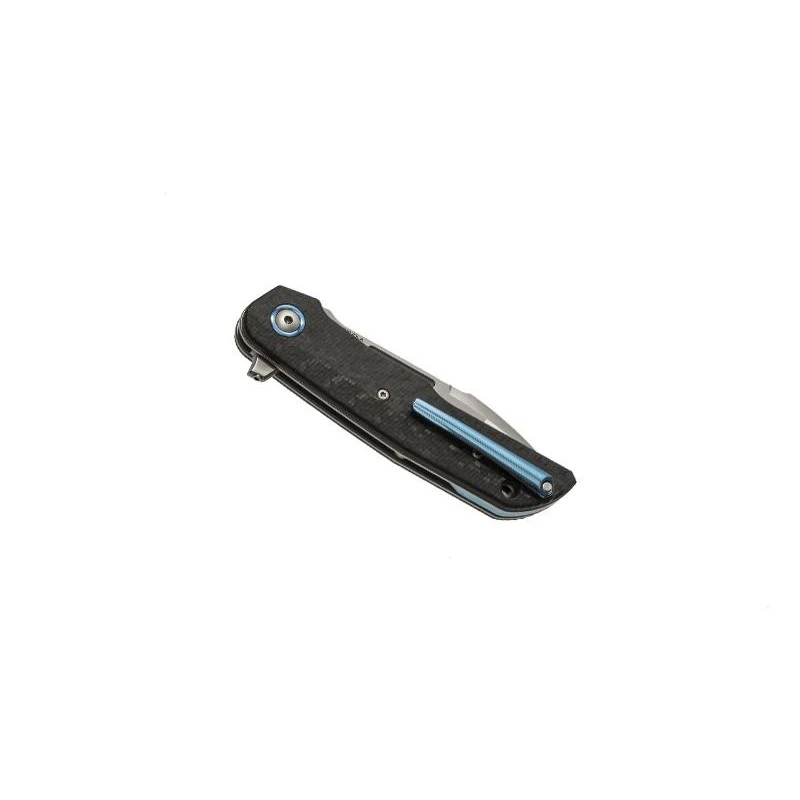 GrĂące Ă son joli manche noir en fibre de carbone, ce couteau MKM Clap LS01C par LionSteel est trĂšs lĂ©ger ce qui lui vaut une facilitĂ© de transport en toutes circonstances. D’autant plus que le manche ne mesure que 11cm de longueur, avec entretoise et clip en titanium bleu. En plus d’ĂȘtre pratique, cela apporte Ă©galement une touche de modernisme au couteau. Pour rappel, ce modĂšle est livrĂ© avec sa pochette noire en nylon, elle est d’ailleurs dĂ©corĂ©e par le logo MKM aux couleurs de l’Italie, son pays de fabrication (Ă Maniago). Une pochette Ă©lĂ©gante qui se rĂ©vĂšle facile Ă ouvrir grĂące Ă fermeture zip.