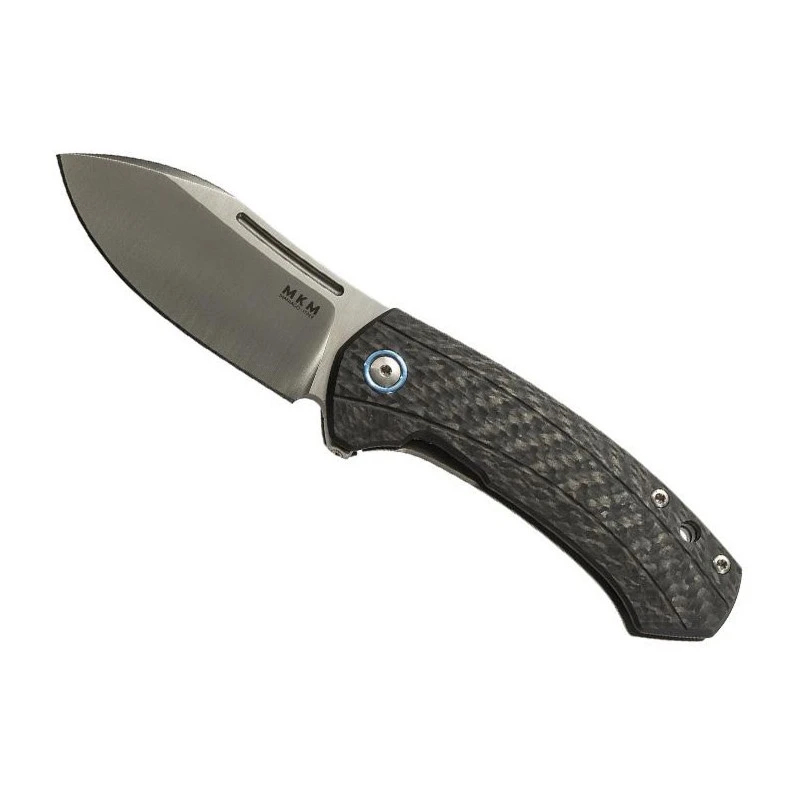Le couteau MKM Colvera, par LionSteel, référence LS02CT, est conçu par le designer Jesper Voxnaes. C’est un couteau de poche possédant un manche fabriqué en fibre de carbone noire au recto, ainsi qu’en titanium gris au verso, une diversité de matériaux qui rend ce couteau MKM Colvera ultra élégant. De plus, peu importe la face, le manche se voit décoré par un pivot en titanium anodisé bleu, apportant son lot de modernisme. Avec une longueur de 105mm, la poignée peut être facilement rangée dans une poche, il y a d’ailleurs un clip en titanium gris visant à faciliter les déplacements/mouvements. Relativement large, le manche confère une prise en main toujours ferme et très confortable.