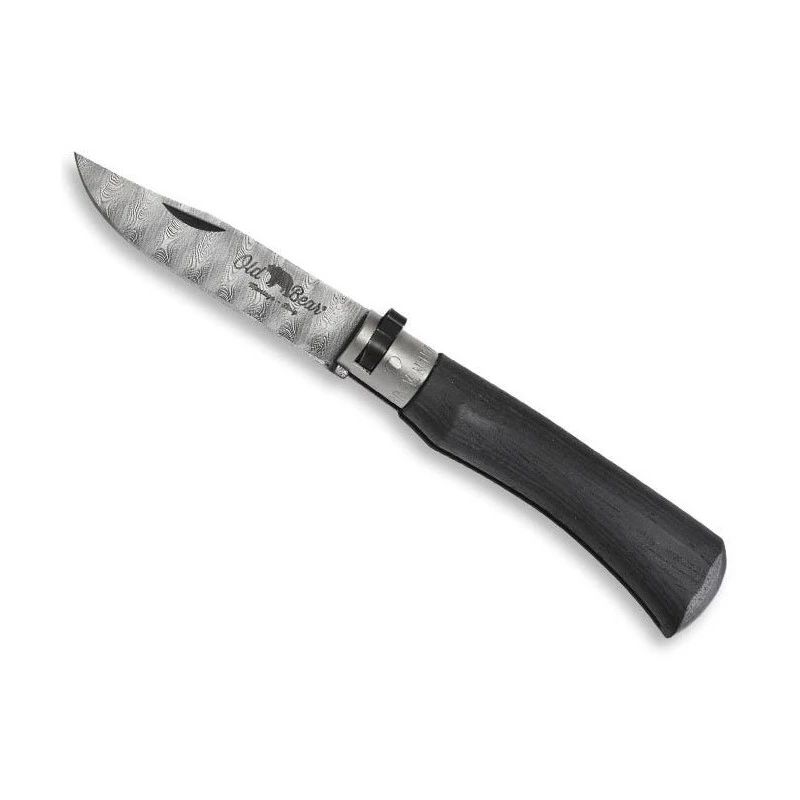 Ce couteau pliant Old Bear 312.D, bois d’ayous noir, surprend au niveau de la qualité de sa lame. Elle est conçue en acier damas inox DS93X, un acier de grande qualité qui assure de ce fait des découpes efficaces. La lame damas est marquée par le logo Old Bear avec bien évidemment le célèbre motif ours, cala apporte une petite touche décorative. Le couteau de poche vous sera livré avec un beau coffret cadeau en bois/carton, accompagné d’un certificat de contrôle qualité. Existe aussi en bois olivier pour celles et ceux qui aiment la clarté.