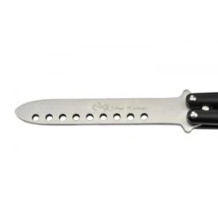 Le couteau papillon Albainox Guerrero référence 02139 est ultra moderne. Déjà, il possède un manche en aluminium de longueur 123mm sublimé par une magnifique décoration multicolore (impression 3D pour un effet spectaculaire). Sans doute l’un des plus beaux balisong de toute la boutique ! Une chose est sûre, l’utilisateur aura envie de le tenir en main, d’autant plus que la lame à vagues est fabriquée en acier inoxydable (résistance à la rouille). Fabriqué en Espagne, le couteau papillon Albainox Guerrero 3D apportera de la couleur à toutes vos aventures quotidiennes. Un design à couper le souffle pour un prix de vente tout à fait acceptable !