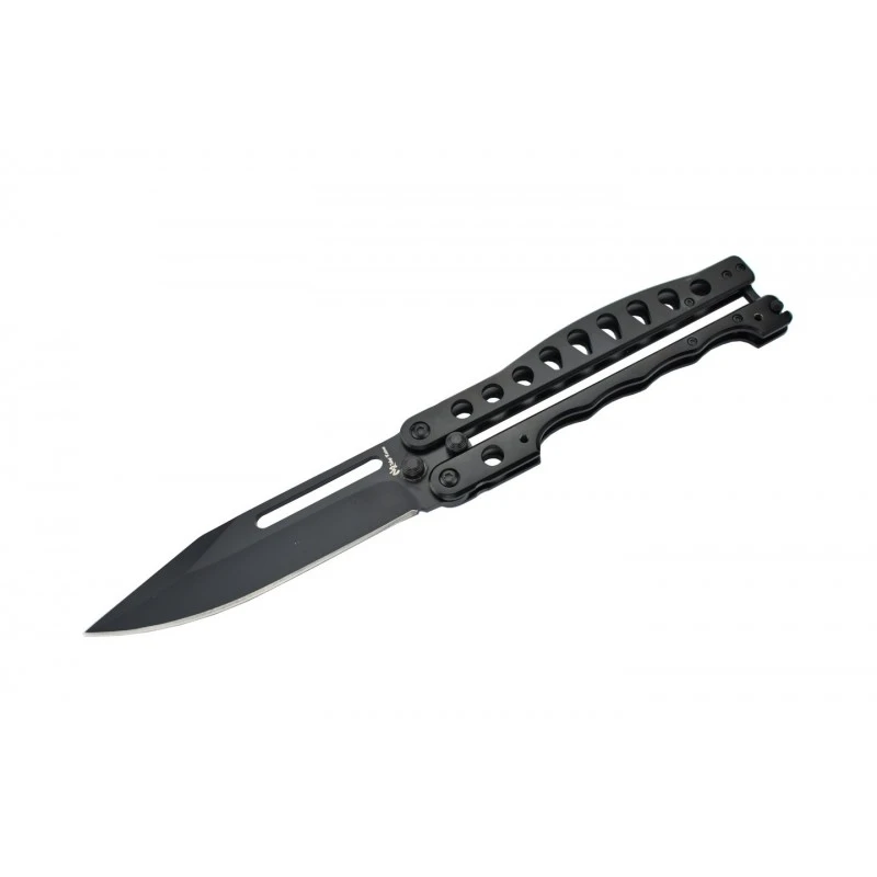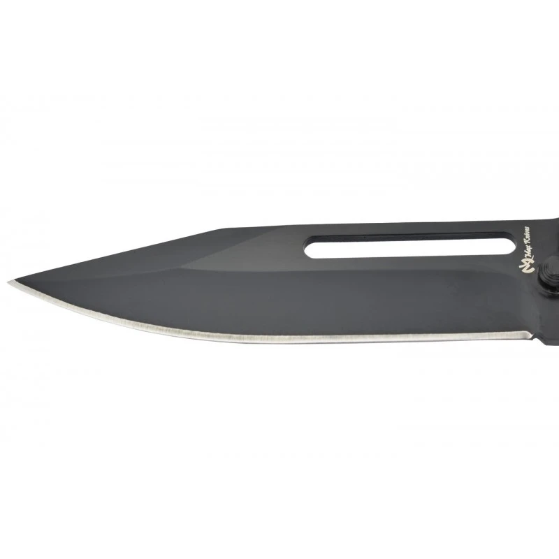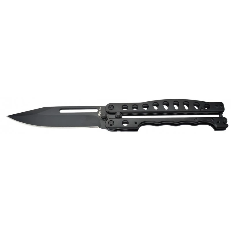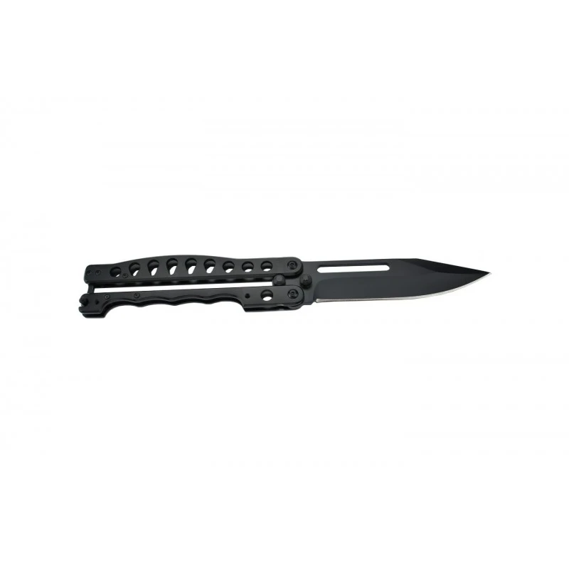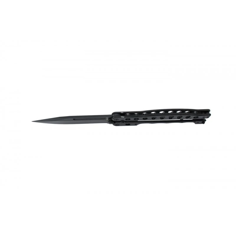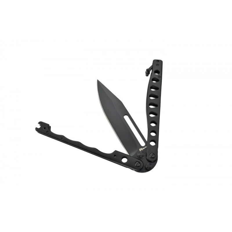 Le Max Knives P29 est un grand couteau papillon possédant une lame de 13cm de long, conçue en acier inoxydable 440C. Ajourée par un grand rectangle aux bords arrondis, la lame est à bout pointu, ainsi que personnalisable par procédé gravure. Elle est marquée par le logo Max Knives en blanc, créant ainsi un contraste optimal.