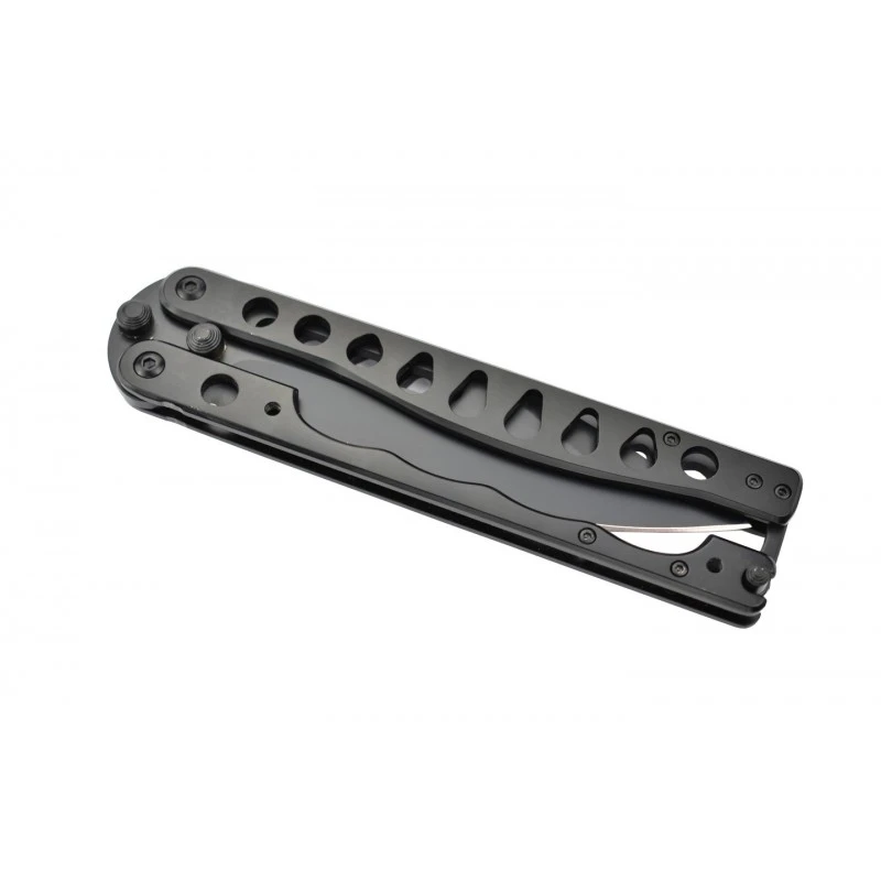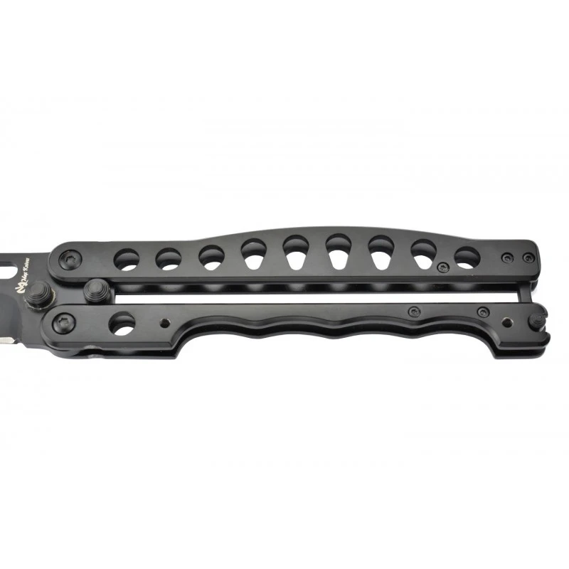 Le couteau papillon P29 Max Knives est un balisong qui est également muni d’un manche noir de forme ergonomique pour un maximum de confort en utilisation. Un manche qui bien sûr, est séparé en deux parties, la partie supérieure est ajourée par de nombreux trous, la partie inférieure elle est à l’origine de l’excellente ergonomie du P29. Un couteau papillon XXL signé Max Knives, qui s’avère être tout de même confortable à manier.