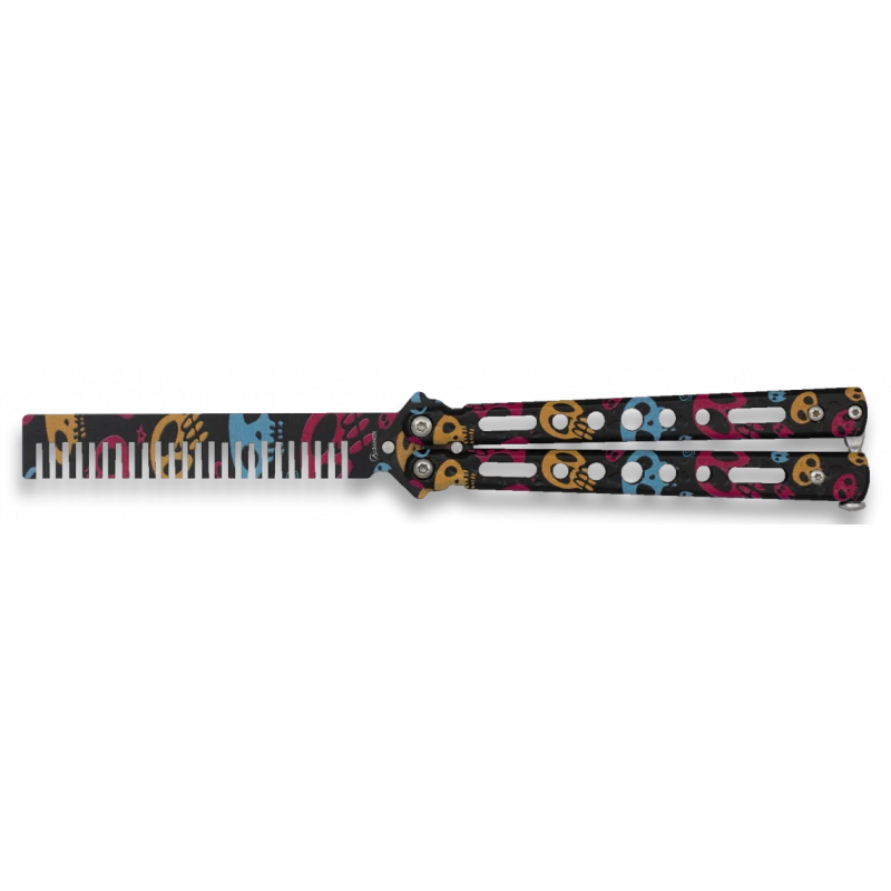 Vous cherchez un accessoire de mode original qui se démarque de tous les autres? Le couteau papillon peigne dessin 3D motif tête de mort d’Albainox est le choix parfait pour vous!