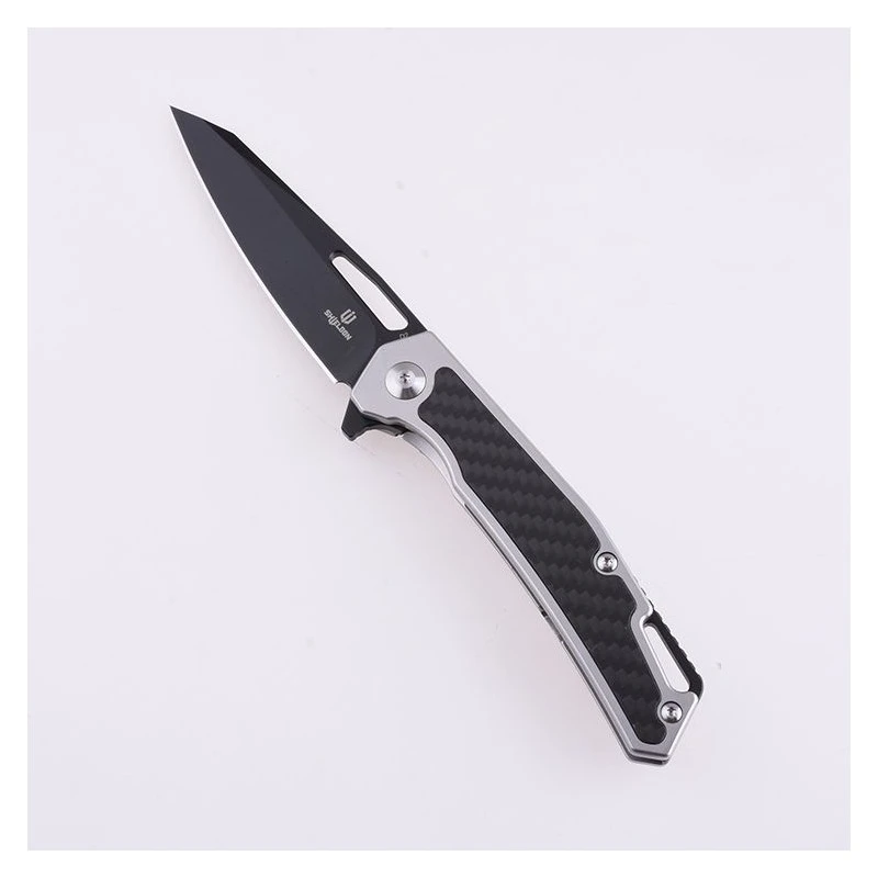Le designer Django a parfaitement rempli sa mission, en atteste l’apparence audacieuse et le dynamisme de ce couteau pliant totalement en phase avec son époque. Le manche ergo en acier inoxydable 3Cr14 riche en carbone est rudement solide lui assurant une longévité certaine. Un clip de transport est intégré sur la face arrière de la poignée.