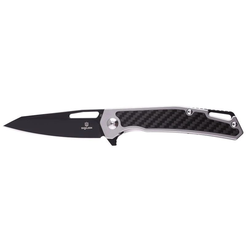 Quant à la qualité de sa lame, elle est tout bonnement fantastique ! Fabriquée en acier D2, utilisé uniquement dans la conception de grands couteaux, cette lame Reverse tanto de 95mm de long au tranchant lisse arbore une finition en titane noir. Le nom de la marque « Shieldon » y est signé dessus.