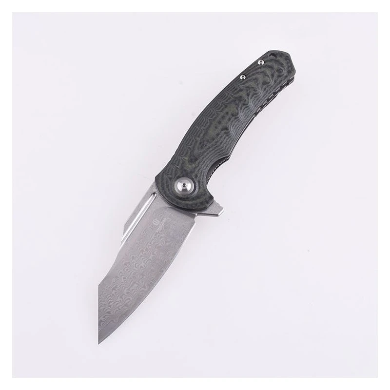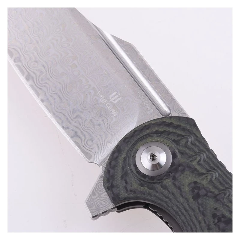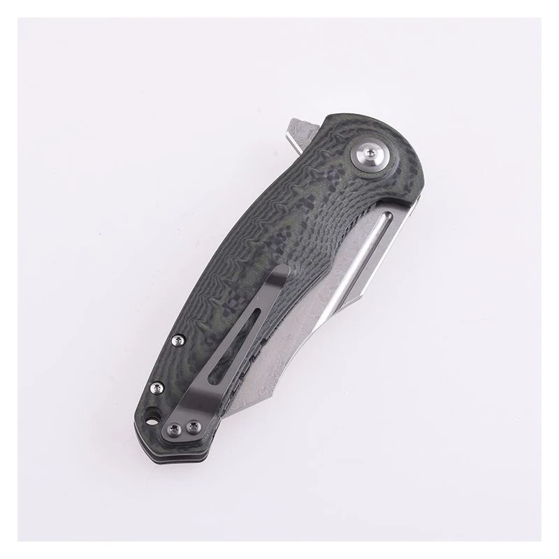 Le manche vert en G10 riche en carbone est léger et solide, en plus d’être très agréable à l’oeil. Un clip de transport est intégré au dos de celui-ci et facilite ainsi son transport. Ou vous pouvez aussi utiliser l’étui fourni par la marque.