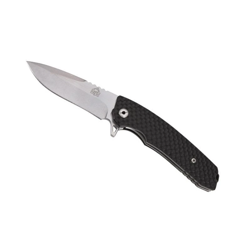 Ce couteau Puma-TEC référence 300912 est doté d’un sublime manche de 12cm de longueur en G10 noir usiné en « nid d’abeille ». Il est très difficile de résister à son charme, surtout que ce couteau d’exception est en plus livré dans un beau coffret. Tranchante, la lame de ce couteau Puma-TEC est conçue en acier inoxydable 440 finition « stonewashed » avec « flipper » à cran intérieur. Un couteau qui sera parfait pour offrir aux collectionneurs de jolis couteaux !