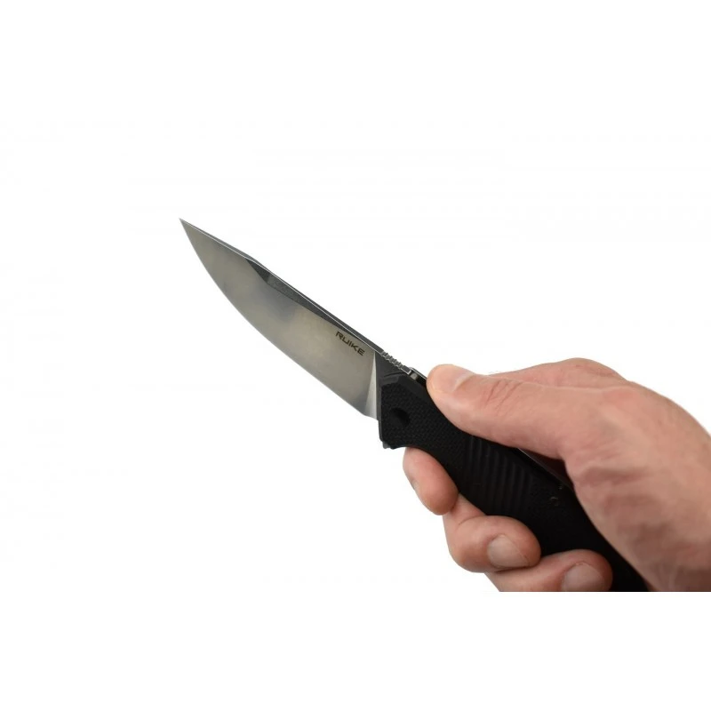 Le couteau D191-B par Ruike va vous en mettre plein la vue, notamment grâce à son manche bi-matières. En effet, il est conçu en G10 noir texturé au recto, antidérapant, ce qui permet à la main de ne jamais glisser lors des manipulations. Au verso, c’est l’acier inoxydable qui est utilisé afin d’apporter de la fiabilité à la structure. La forme ergonomique de la poignée rend la prise en main toujours très confortable, agréable, la facilité de port est également de la partie. Le poids total du couteau est de 121 grammes, autant dire qu’il ne vous alourdira que très peu lors des mouvements et déplacements.
