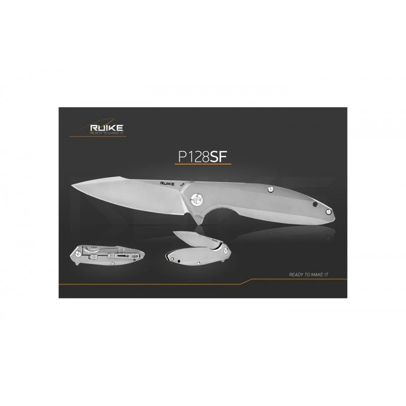 Le couteau pliant Ruike P128SF est fabriqué presque intégralement en acier inoxydable, ce qui lui donne un certain charme, ainsi qu’une parfaite résistance à la corrosion/rouille. Il possède une large lame, relativement épaisse (3,5mm), conçue en acier inox Sandvik 14C28N garantissant un tranchant rasoir, elle est idéale pour couper, écailler mais aussi percer. Marquée par le logo Ruike, la lame de 93mm s’ouvre facilement grâce au flipper et se verrouille par l’intermédiaire du Frame Lock Beta Plus (possibilité de transformer le couteau de poche pliant en couteau fixe). Grâce à ce système, l’utilisateur sera en mesure d’appréhender au mieux toutes les situations, même les plus complexes.