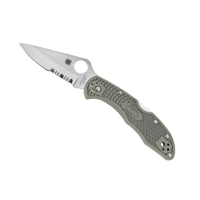 Doté d’un manche vert en nylon/fibre de verre, le couteau Spyderco Delica 4 C11PSFG conviendra aussi bien pour les militaires que les civils. La couleur du manche est en réalité un mélange de gris et de vert : cela permet au couteau Spyderco de pouvoir se camoufler dans la nature. Le matériau du manche « foliage green » assure une très bonne robustesse ainsi qu’une excellente ergonomie : le Spyderco Delica 4 C11PSFG est pourtant léger avec un poids de seulement 71 grammes. Facile à transporter, ce modèle made in USA intègre également un clip de poche. Côté lame, elle est fabriquée en acier inoxydable VG-10 à cran, elle est à la fois lisse et dentée ce qui la rend très polyvalente : elle est parfaite pour l’aventure, la survie, le camping ou même l’usage militaire. Système de verrouillage de type Back lock.