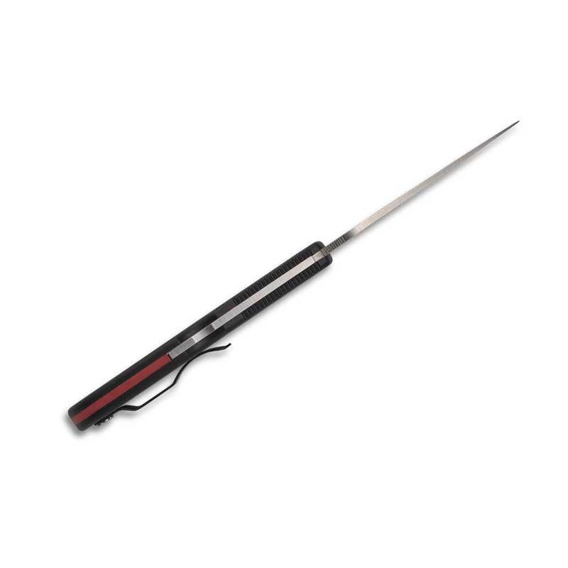 Le Spyderco Endura 4 Thin Red Line C10FPSBKRD rend hommage aux pompiers. Son principal caractéristique, c’est son manche noir en FRN (nylon/fibre de verre) avec entretoise en nylon/fibre de verre rouge. Une petite ligne de couleur qui fait la différence en matière de style, et qui fait honneur à celles et ceux qui risquent leur vie pour sauver celles des autres. Texturé pour un confort de prise en main toujours plus grand, le manche d’environ 125mm intègre un clip de poche à quatre positions noir enrichi du motif Spyderco.